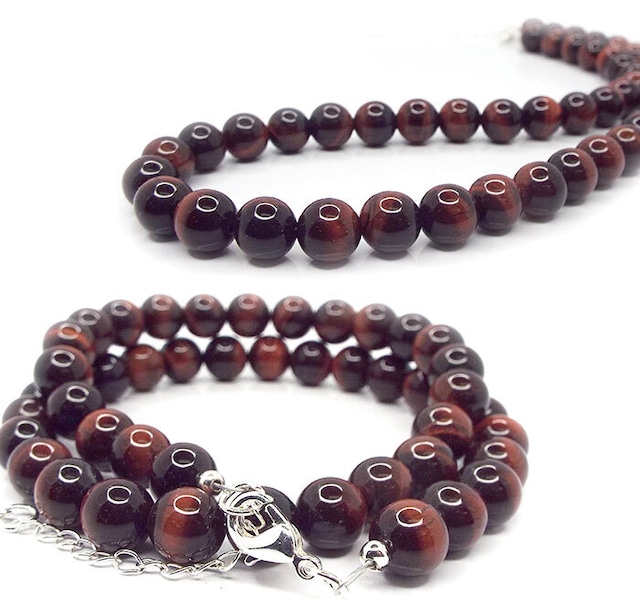 天然石 ネックレス レッドタイガーアイ 虎目石 8mm玉 商品管理番号:N1-28 レッドタイガーアイは、その深い赤褐色が特徴的です。古くから「勇気」と「力」を象徴する石として愛されてきた天然石です。このネックレスに使用されているレッドタイガーアイは、持つ人に自信を与え、ポジティブなエネルギーを流すと言われています。石言葉は【勇気】です。 レッドタイガーアイは「精神力」と「意志の強化」を促進する効果が期待できます。その美しい赤褐色は、カジュアルなスタイルだけでなく、ビジネスシーンでも大人の魅力を引き立てることができる、非常に万能なアイテムです。このネックレスは、シンプルながらも個性的な印象を与え、あなたの日々をもっと豊かに彩ります。 主な効果 - **精神力の強化**: 自信を持たせ、挑戦する力を引き出します。 - **ポジティブなエネルギー**: ネガティブな思考を軽減し、活力を与えます。 - **自我の確立**: 自分自身をしっかりと持ち、自己主張を強化します。 - **健康運の向上**: 身体的および精神的な健康のサポートをします。 サイズ・容量 全長:約41cm~約45cm 留め具:カニカン 素材:レッドタイガーアイ 虎目石 ■発送・注文に関する情報や注意事項 ・ご購入後7日以内に発送いたします(土日含まず) ・クリックポストにて発送 (配送中の破損に関しては責任を負いかねますのでご了承ください) ■その他の情報や注意事項 ※こちらの商品は天然素材のため、色や模様に個体差があります ※表示のサイズは必ずしも最大値・最小値のサイズのものが入っているわけではございません。 ※照明の具合で実際とは色合いが異なる場合がございます。 また、天然素材特有のクラック・内包物を有する場合がございます。予めご了承下さい。 ※ご注文後のキャンセル、返品、交換は一切出来かねます。 ※年末年始また大型連休時、お盆時期は店舗休業となり発送に大幅な遅れが生じます。 その他、諸事情により発送が遅れる場合もメールにてご連絡致します。