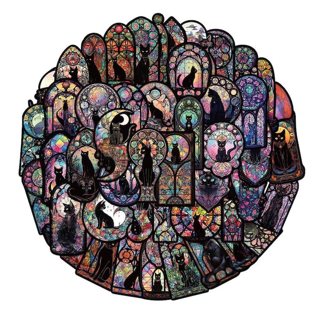ステッカー 黒猫 ステンドグラス柄ステッカー 絵柄ランダム 50枚セット 商品管理番号:20251127-7136 ※在庫切れの場合は納期までに約1カ月程度お時間を頂きます 事前にコンタクトより在庫確認していただくとより安心してお買い求めできます。 【内容品】 ステッカー 全50枚 サイズ 約4~7.5cm(デザインにより異なります) 材質 紙、PVC ※ランダム封入です。生産時期により画像とデザインが異なるものが含まれる場合もございます ※表面に防水加工は施されていますが、長時間の水濡れやこすれにはご注意ください 幻想的でアートな世界観をそのまま切り取ったような、黒猫×ステンドグラスデザインのアートステッカーセットが登場! 黒猫やゴシック、ダークで神秘的な雰囲気が好きな方にぴったりのアイテムです。 色とりどりの背景にたたずむ猫たちは、美しくも不思議な空気をまとい、あなたの持ち物を彩ってくれます。 全て異なる絵柄をランダムに50枚詰め込んだ、見ても貼っても楽しいお得なセットです。 シールは耐水性のある仕様なので、ノート、スマホケース、水筒、スーツケース、パソコンなど様々なアイテムに気軽にデコレーションOK! 神秘的でかわいらしいデザインは、猫好きさんはもちろん、スピリチュアルな雰囲気やアート・タロット系デザインが好きな方にもおすすめです。