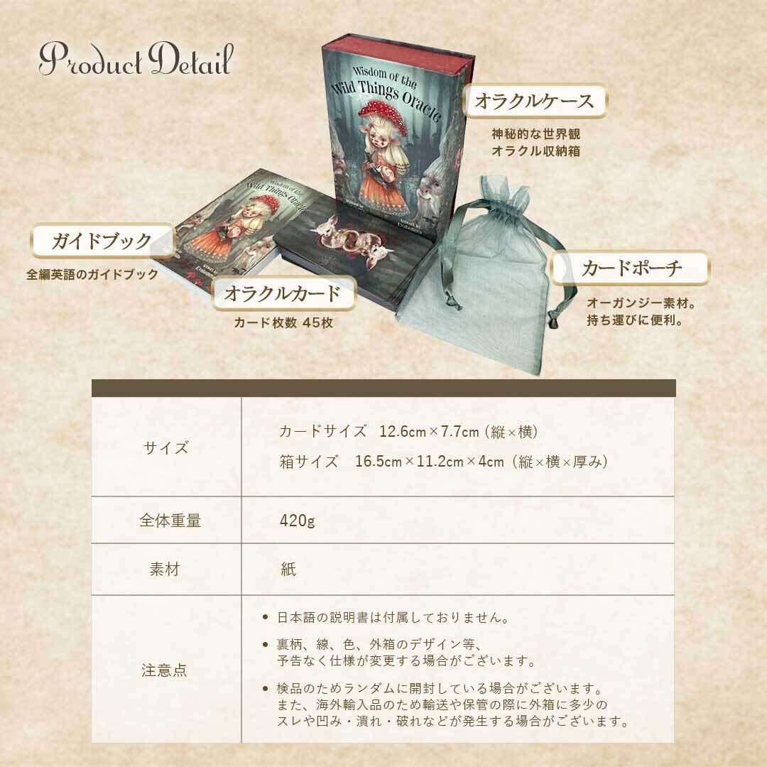 幻想的なイラストで綴られる『Wisdom of the Wild Things Oracle』は、心の深層=“内なる森”に住まう精霊や動物たちと向き合うための、ユニークで詩的なオラクルカードです。