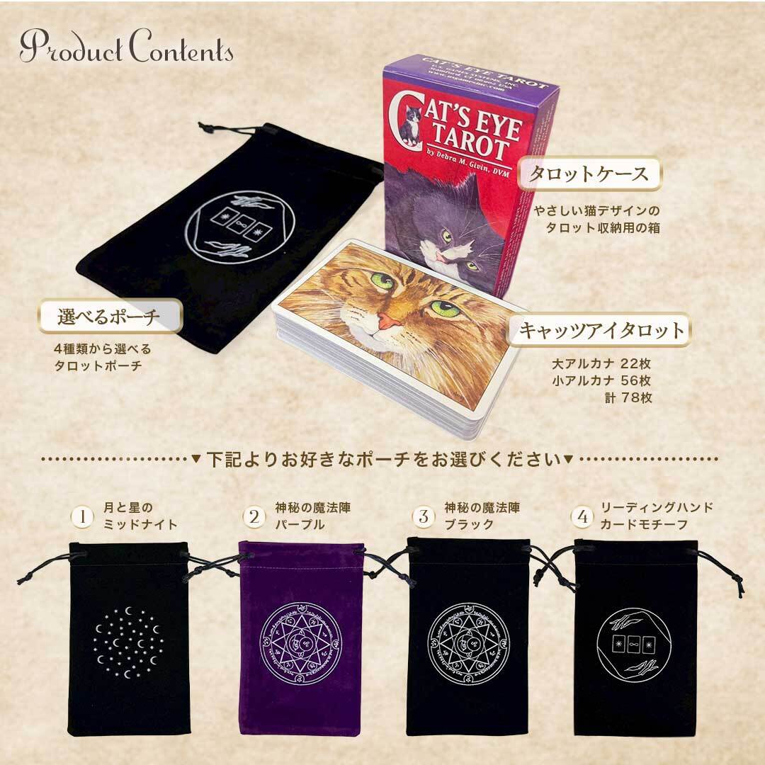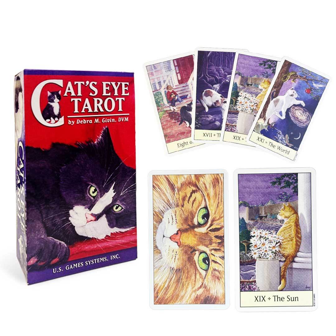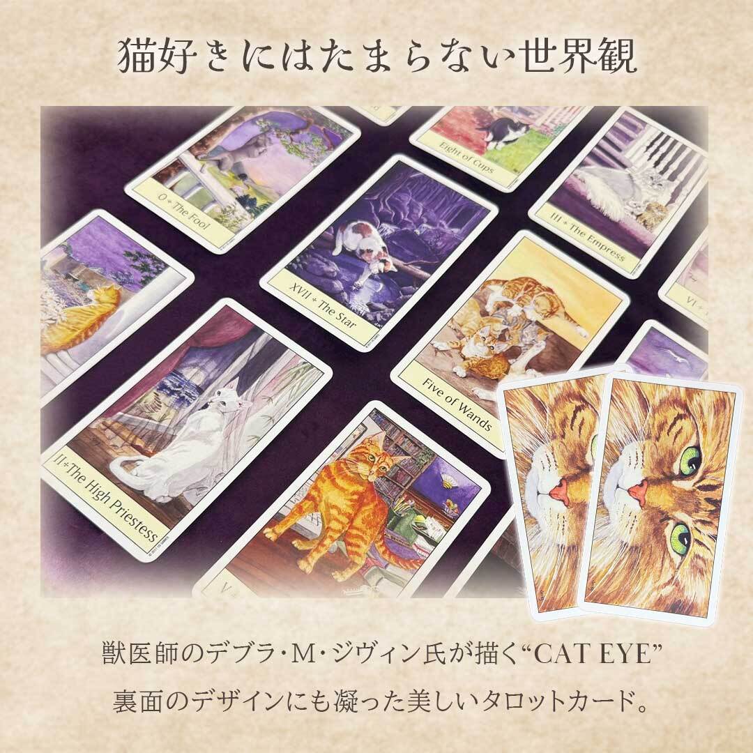 『Cat's Eye Tarot』は、獣医師Debra M. Givin氏によって制作された全78枚のタロットデッキ。ライダーウェイト版をベースにしながら、猫たちのしぐさや暮らしの中にタロットの象徴を落とし込んだユニークな構成が特徴です。