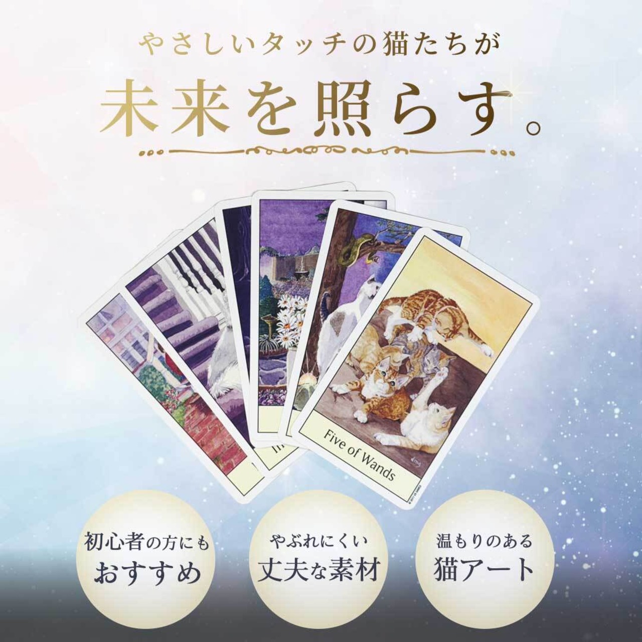 猫好き必見!猫の目線で描かれた、愛らしくも奥深いタロットカードです。