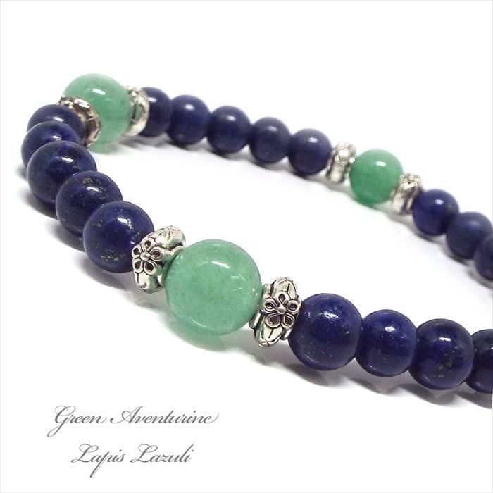 幸運を引き寄せ 天然石 グリーンアベンチュリン ラピスラズリ パワーストーンブレスレット