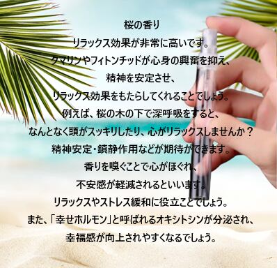 特にリフレッシュしたい方や、優雅な時間を求める方におすすめのアイテムです。桜の優雅な香りが、心に幸福感をもたらしてくれることでしょう。