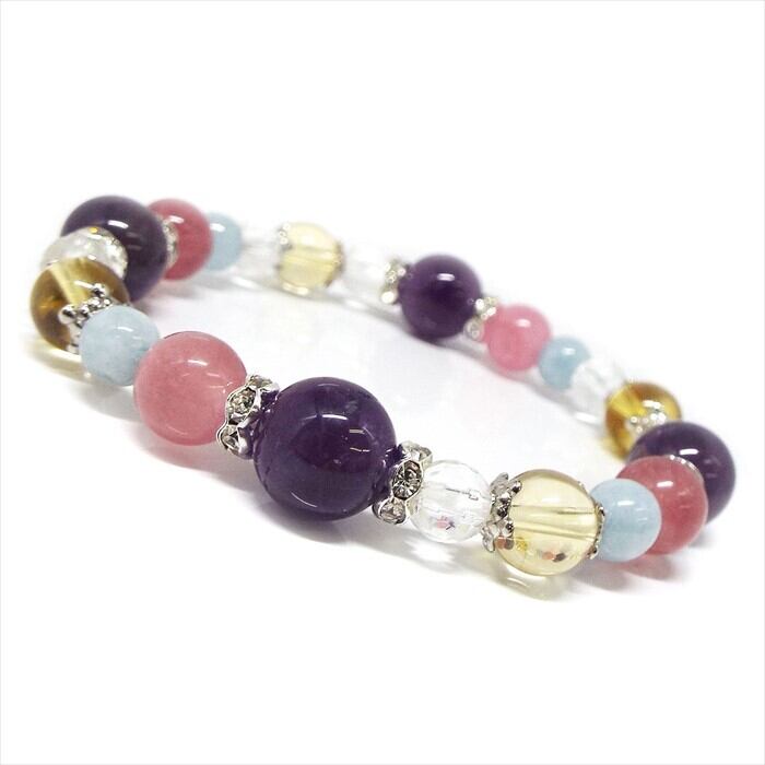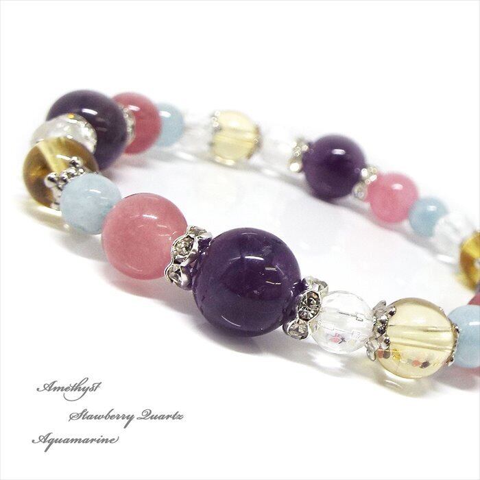 恋愛成就 天然石 アメジスト ストロベリークォーツ アクアマリン シトリン ブレスレット