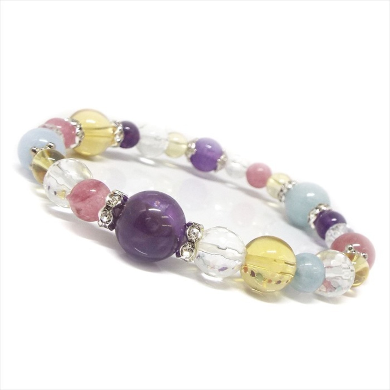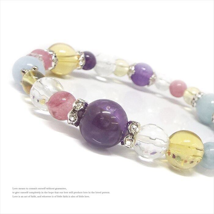 幸せへと導いてくれる 天然石 アメジスト アクアマリン シトリン ストロベリークォーツ ブレスレット