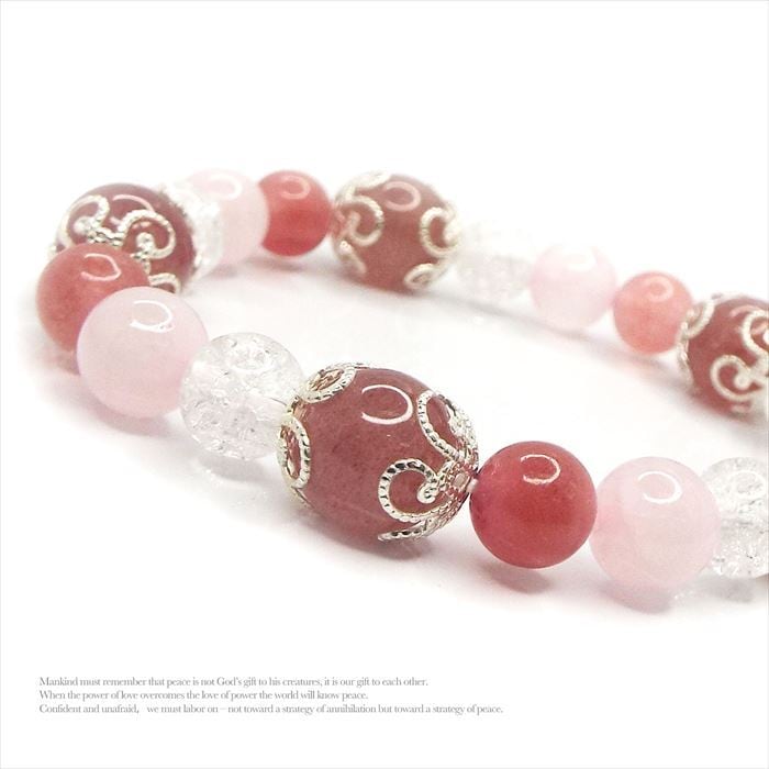 恋愛成就 天然石 ストロベリークォーツ クラック水晶 ローズクォーツ ブレスレット