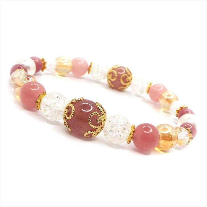 「愛情」「夢の実現」天然石 ストロベリークォーツ クラック水晶 オーラ ブレスレット