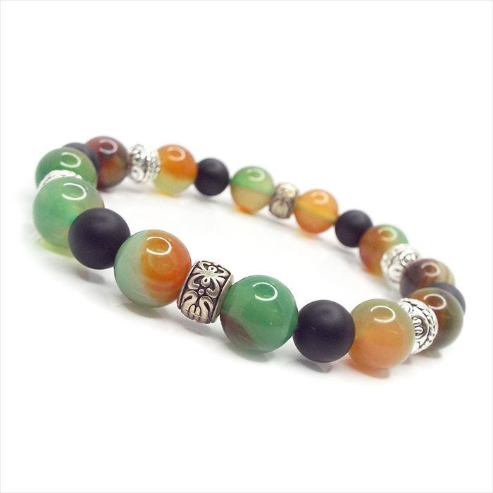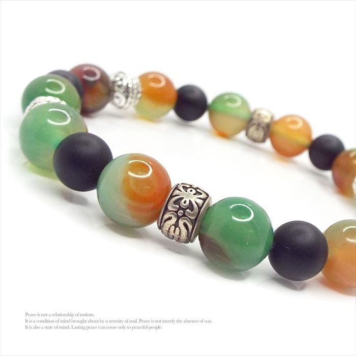 幸運と豊かさを呼び込む 天然石 孔雀瑪瑙 アゲート カーネリアン ブレスレット