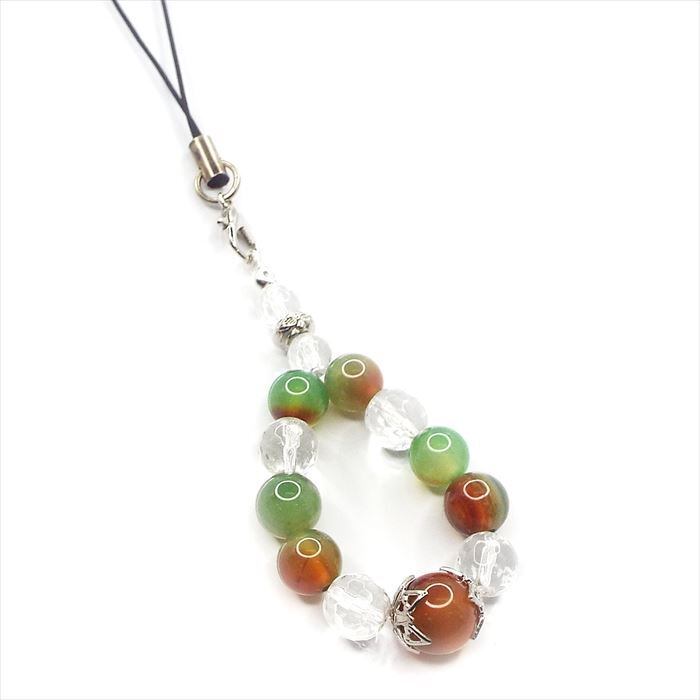 勇気と自信 天然石 ストラップ 孔雀瑪瑙 アゲート 水晶