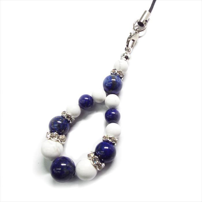 心の調和と直感 天然石 ストラップ ラピスラズリ ホワイトターコイズ