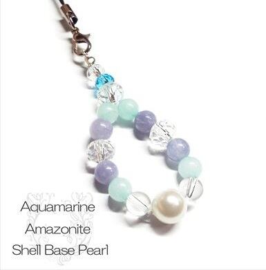 希望と癒し 天然石 ストラップ パール アクアマリン アマゾナイト