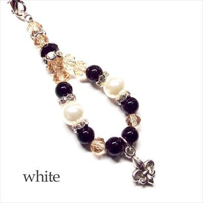 天然石 シェルパール オニキス 百合の紋章 チャーム ストラップ