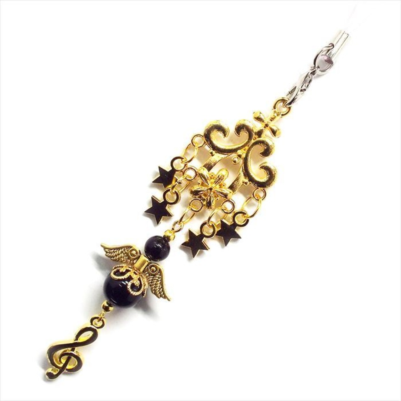 魔除け・厄除け 天然石 ストラップ オニキス 天使