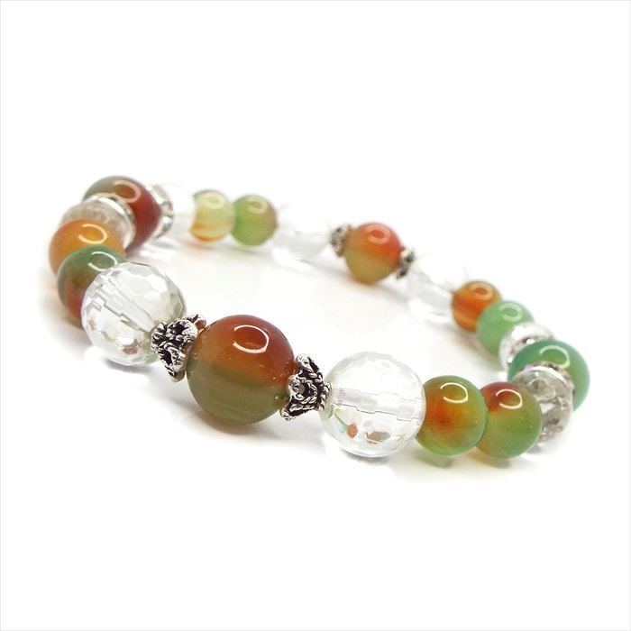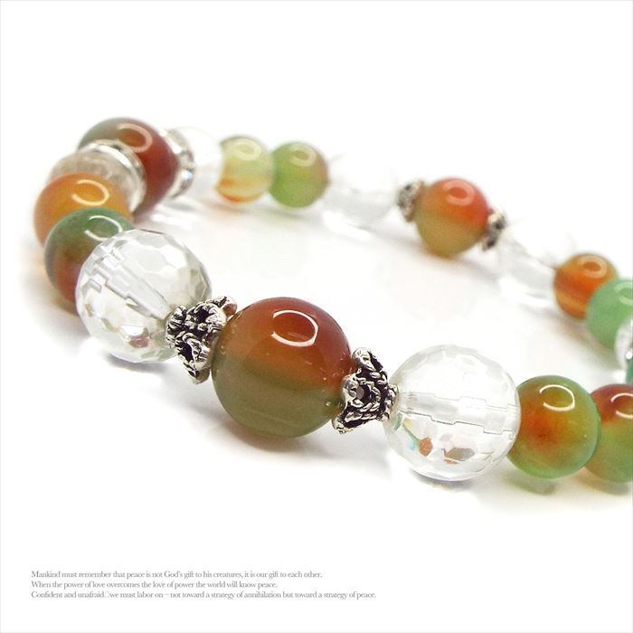 天然石 孔雀瑪瑙 アゲート 水晶 パワーストーンブレスレット