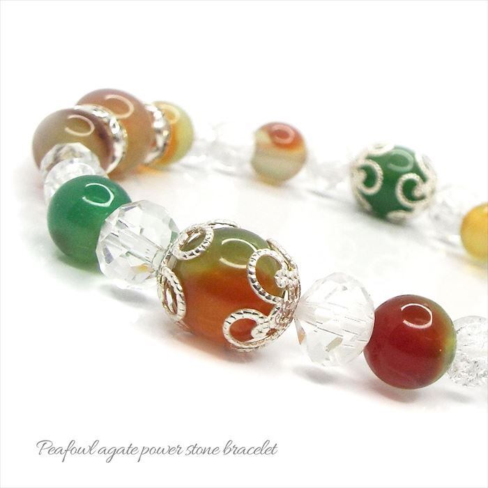 天然石 孔雀瑪瑙 アゲート クラック水晶 パワーストーンブレスレット
