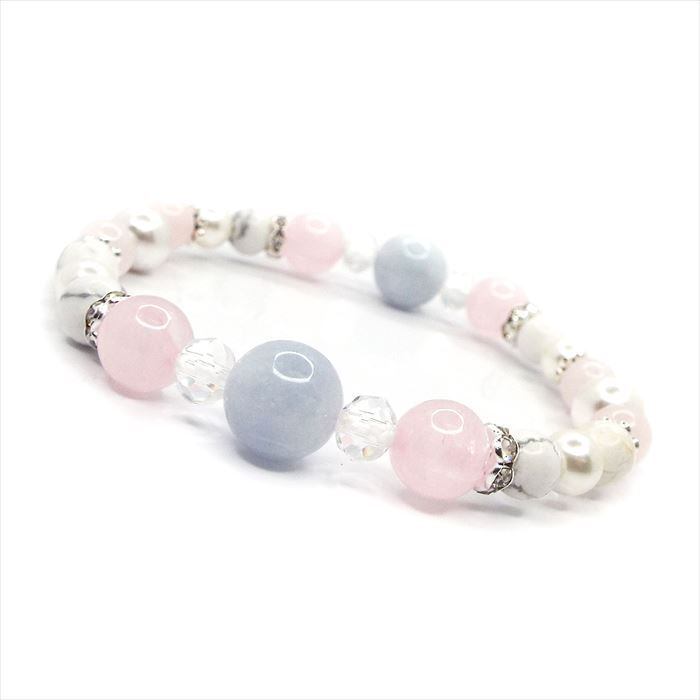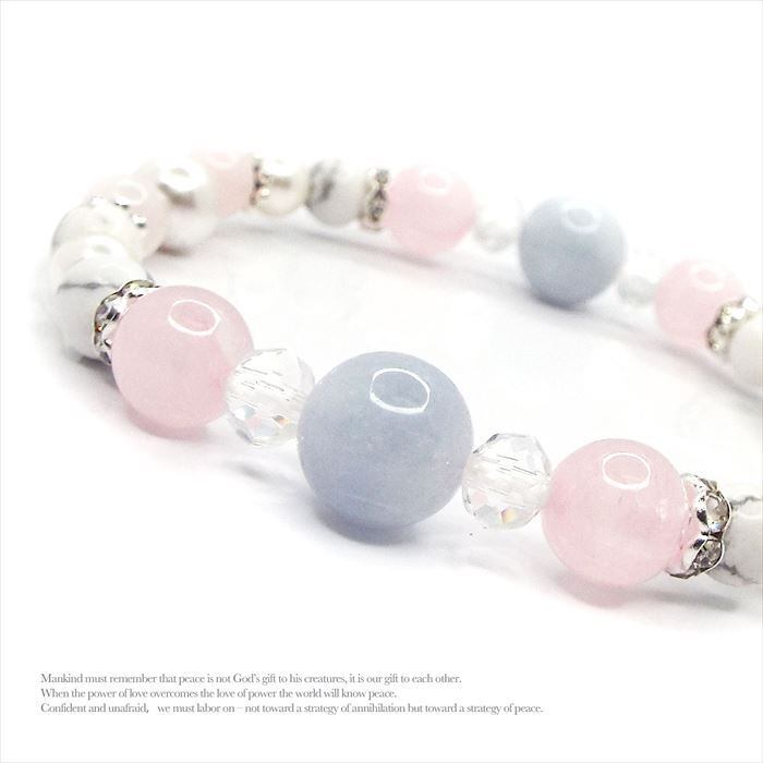 心を癒す 天然石 アクアマリン ローズクォーツ ホワイトターコイズ ブレスレット