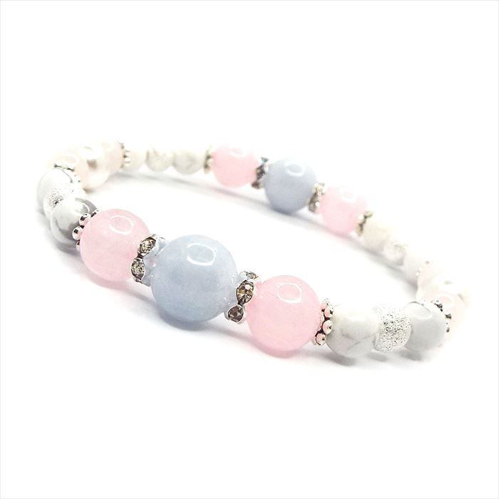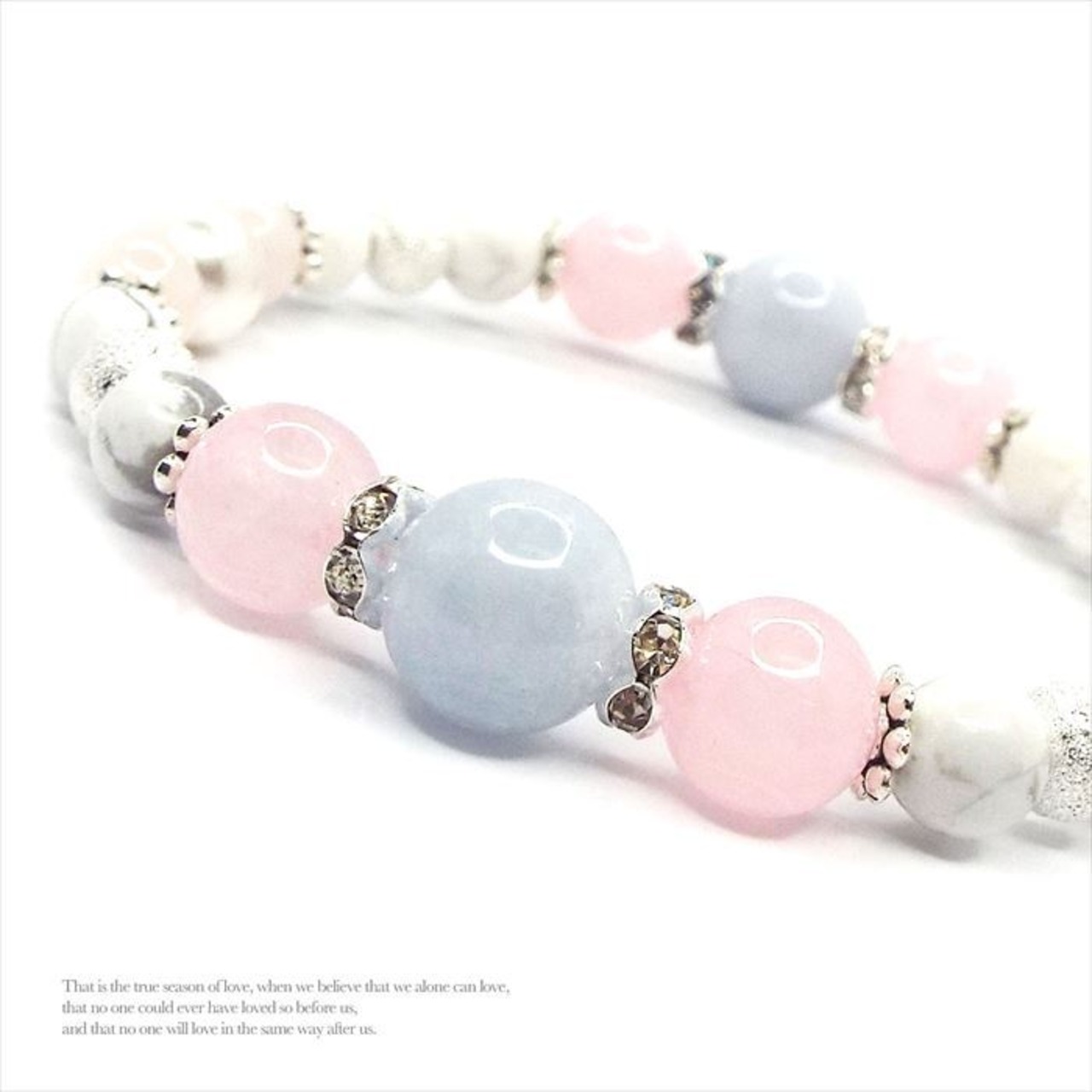 美と調和をもたらす 天然石 アクアマリン ローズクォーツ ホワイトターコイズ ブレスレット
