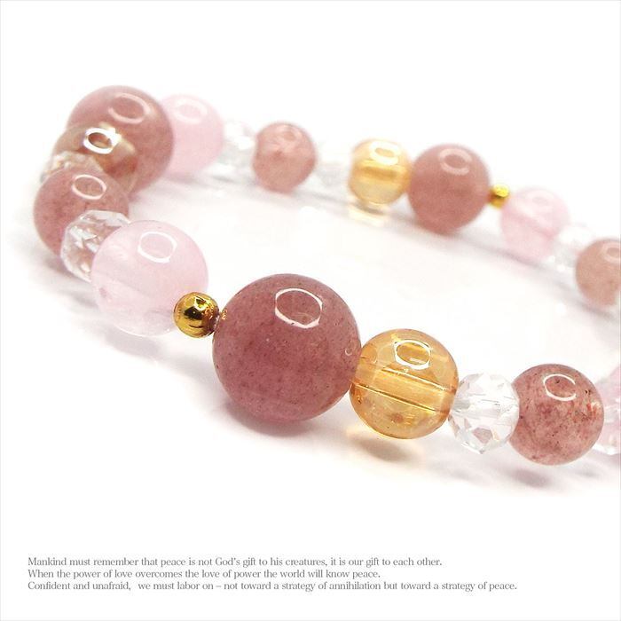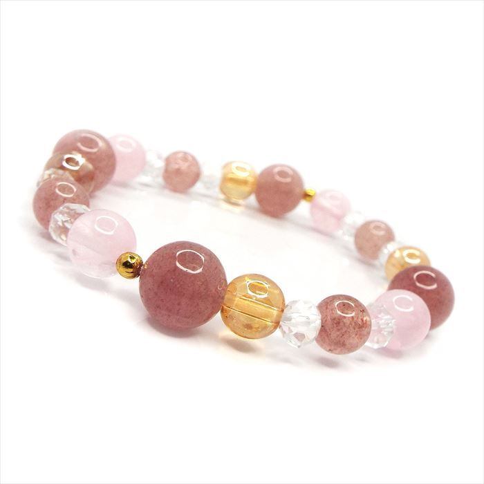 感情の癒し 天然石 ストロベリークォーツ ローズクォーツ オーラ水晶 ブレスレット