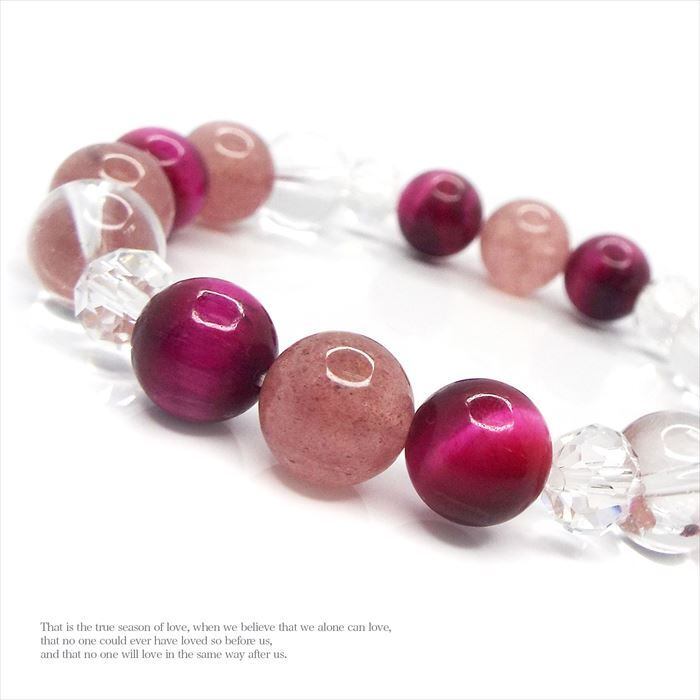 魅力の調和 天然石 ストロベリークォーツ ピンクタイガーアイ 水晶 ブレスレット