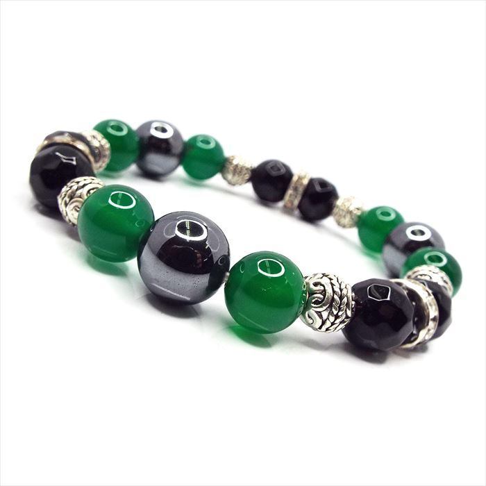 天然石 ブレスレット ヘマタイト グリーンメノウ オニキス