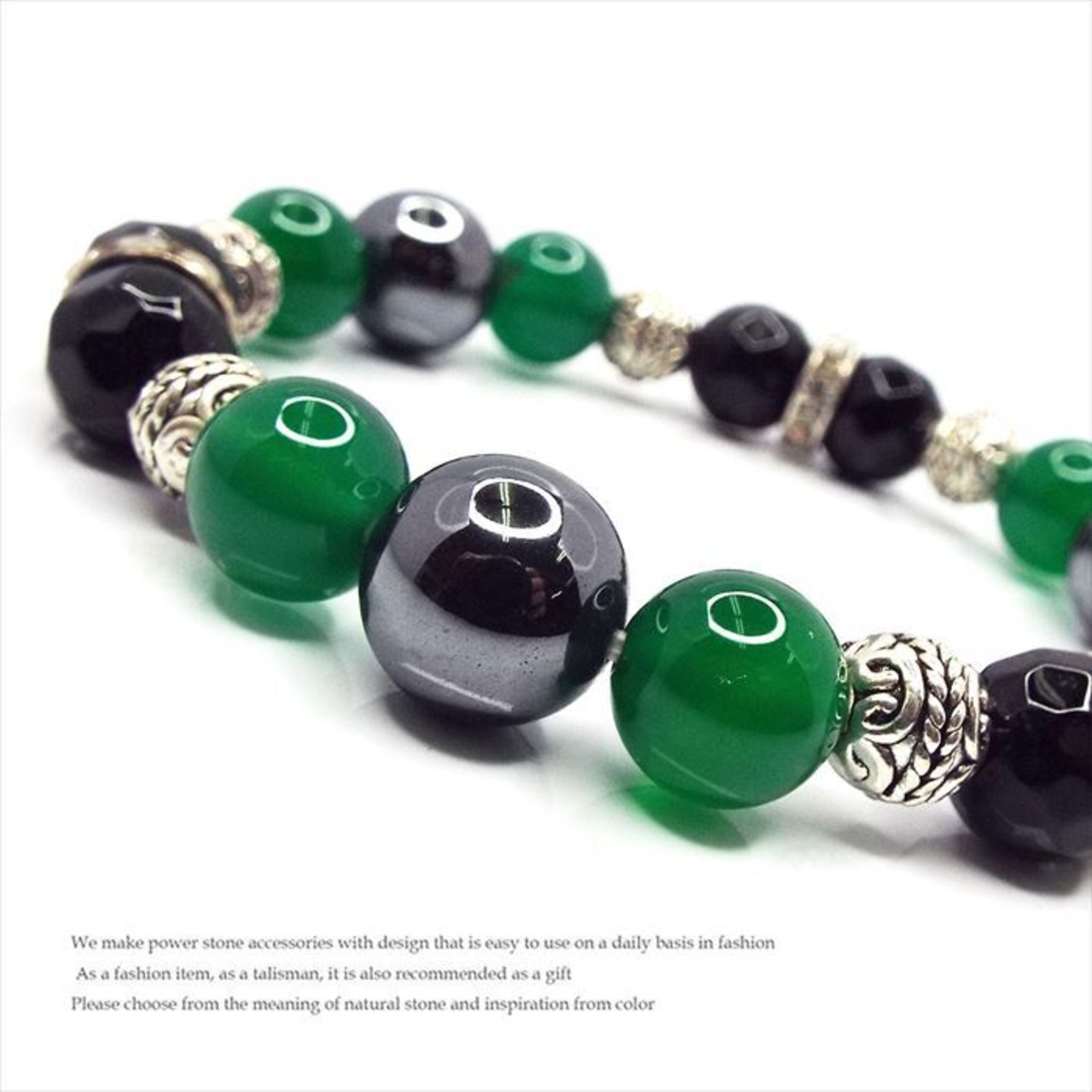 願望達成へ導く 天然石 ブレスレット ヘマタイト グリーンメノウ オニキス