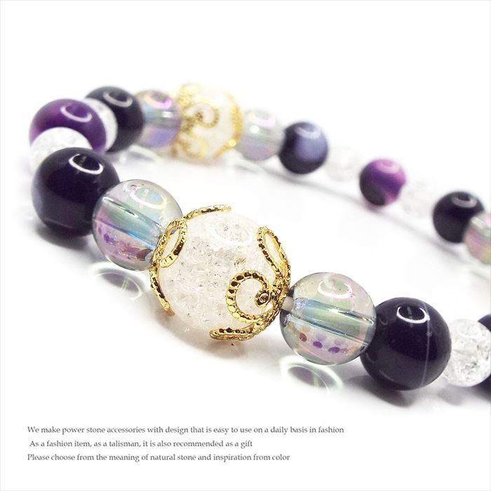 障害を克服 天然石 ブレスレット クラック水晶 バンデットアゲート オーラ水晶