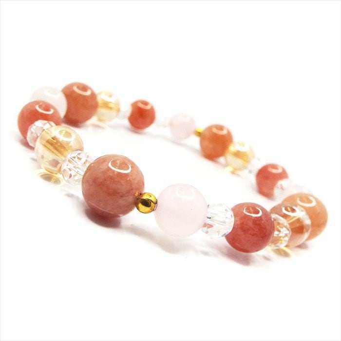 愛と癒しの引き寄せ 天然石 ブレスレット サンストーン ローズクォーツ ゴールデンオーラ