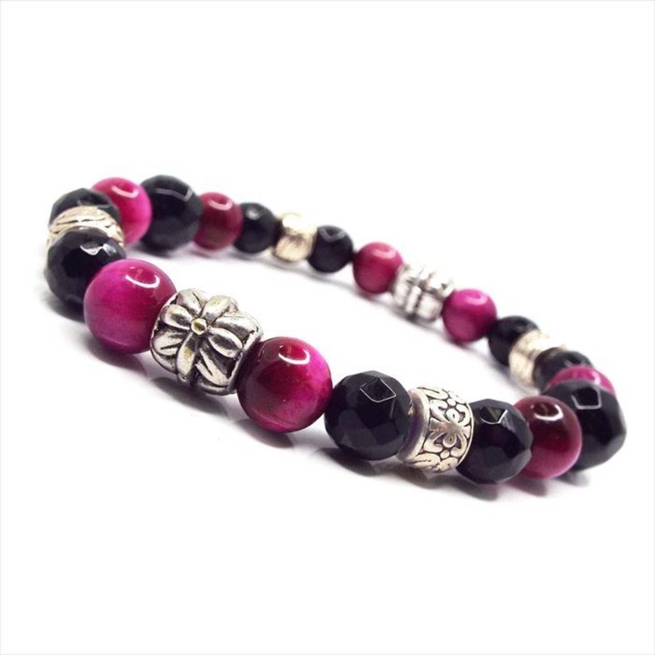 美しいピンクタイガーアイは、持つ人にポジティブなエネルギーを与え、オニキスは内面的な強さと安定感をもたらします。特に新たな出会いや挑戦に臨む方におすすめの一品です。