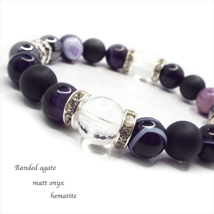 心の輝きを引き出す 天然石 ブレスレット 水晶 バンデットアゲート マットオニキス